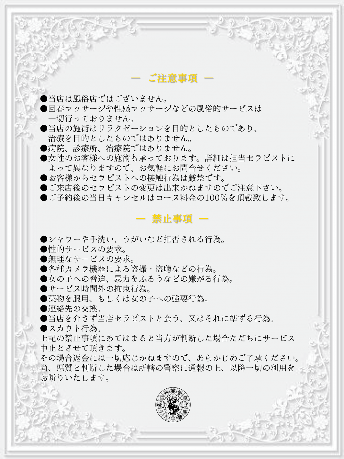 ✔︎お客様からセラピストへの接触行為は厳禁です。