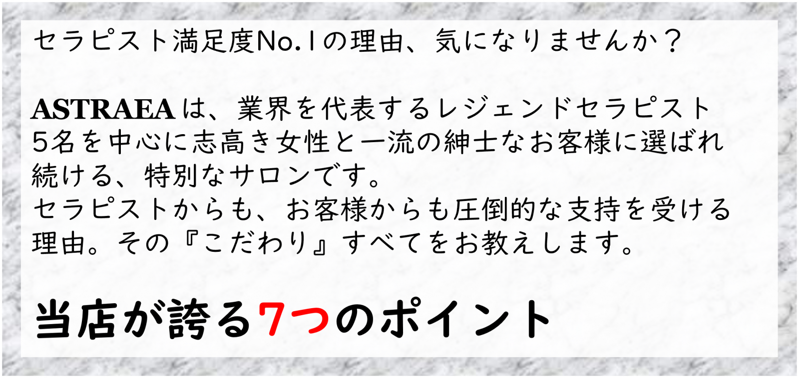 | 当店について | ASTRAEA - Healing Lounge - 恵比寿エリア健全(非風俗)マッサージサロン |