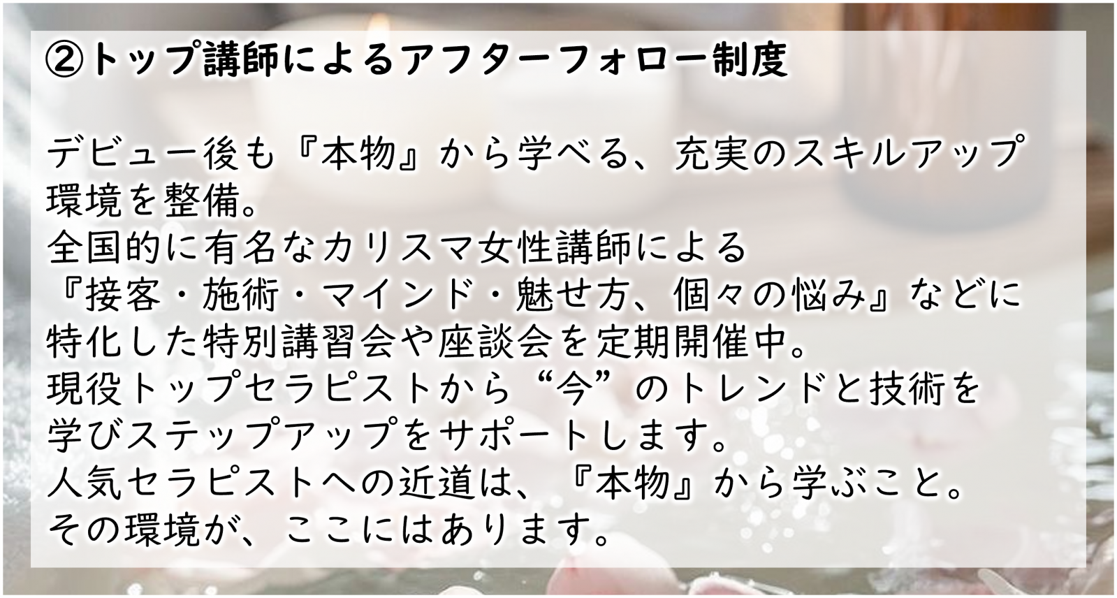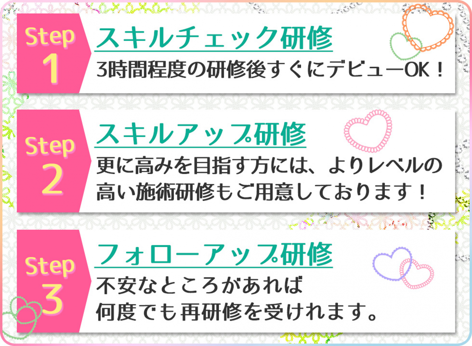 | 募集職種 | エステティシャン・セラピスト・講師 |